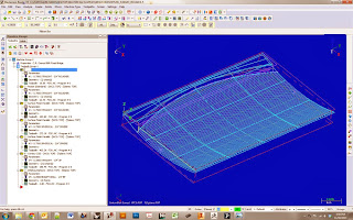 There are the usual pull-down menus on the top of the interface. A number of toolbars with icons are also docked on the top. The machining operations list is on the left. The 3D viewport is on the right.