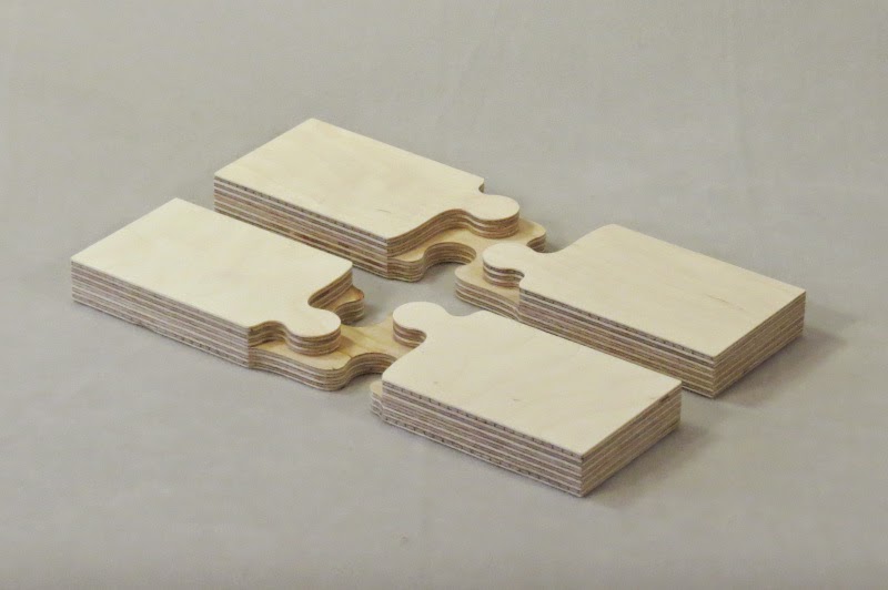 These examples are all cut from Baltic Birch plywood, so named because much of it comes from the Baltic region (those countries surrounding the Baltic sea). The material we use in the Taubman College Fab Lab comes from Russia: